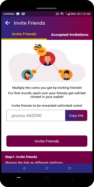 يمكنك دعوة الأصدقاء للحصول على بعض النقاط ، و للقيام بذلك تقوم باختيار Invite Friends من قسم Free Number Center ، و يمكنك دعوة عدد غير محدود من الأصدقاء ، و مقابل ذلك يمنحك التطبيق نفس عدد العملات التي يجمعها أصدقاؤك من الأنشطة الأخرى في مركز الأرقام المجاني