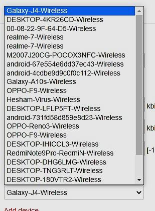 قم بإضافة الجهاز الذي تُريد تحديد السرعة لديه كما في الصورة