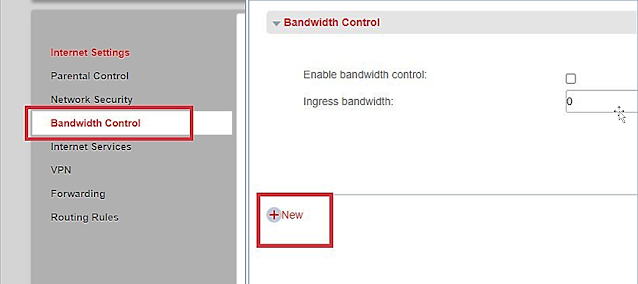 من قسم Internet اضغط على Bandwidth Control ثم قم بالضغط على New أو Edit حسب ما يظهر لديك