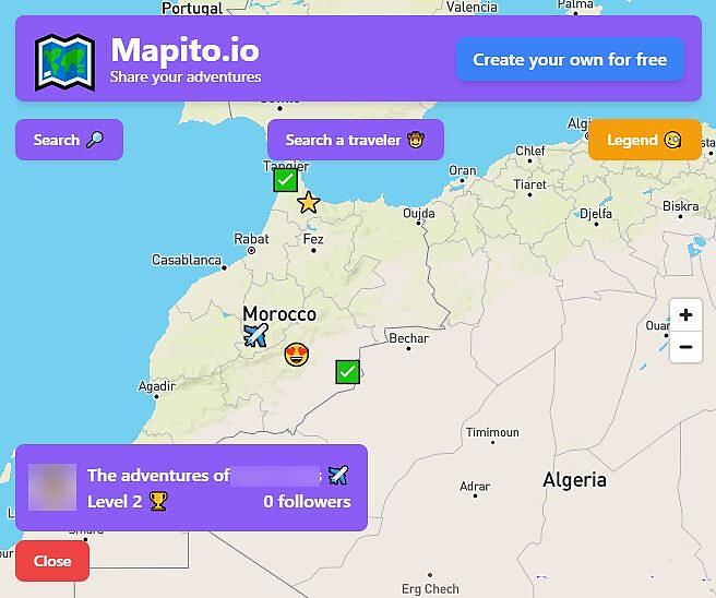 موقع Mapito.io يقدم خدمة مجانية تستطيع من خلالها مشاركة الأماكن التي سافرت إليها على الخريطة بالصور والمعلومات. قم بالدخول للموقع من الرابط اسفل التدوينة. وقم بتسجيل الدخول بحسابك على فيسبوك أو جوجل لتحصل على ملفك الشخصي عليه خريطة لإضافة مكان إلى الخريطة أنقر على زر Add Spot