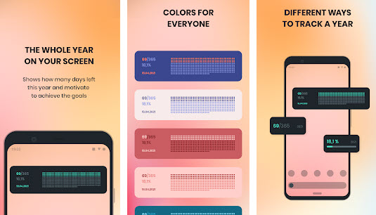 هو تطبيق جديد يتسلل مباشرة إلى أفضل التطبيقات المصغّرة لنظام أندرويد . إنها أداة تسمح لك بمشاهدة تقدم العام الحالي بالأيام أو بالنسبة المئوية ، كما تعرض التاريخ الحالي. يتيح لك الاختيار من بين ثلاث طرق لإظهار تقدم العام ، وأكثر من 30 مجموعة ألوان مختلفة.