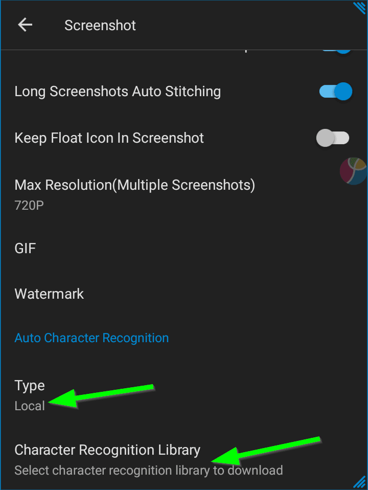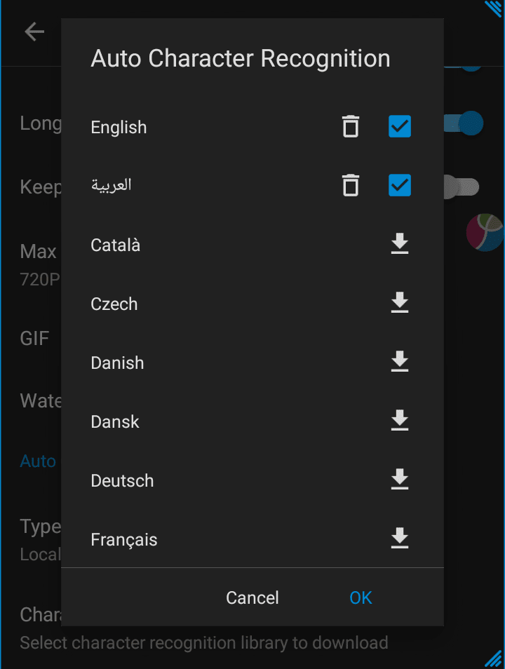 ومنها قم بتحميل مكتبة التعرف على الحروف باللغة التي تريدها ثم قم بتفعيلها ولا تنس التأكد من أنها تعمل بدون إتصال Local كما في الصورة السابقة