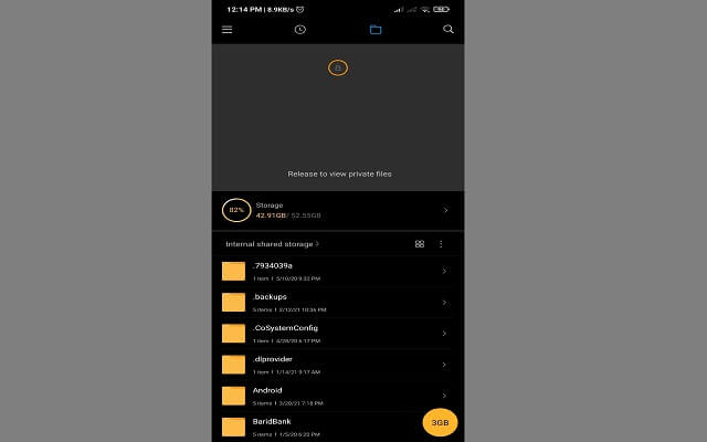 إن كنت تتوفر على بعض الملفات التي لا تريدها أن تظهر في هاتفك ، يمكنك إخفاؤها عن طريق ميزة مخفية في مدير الملفات في واجهة شاومي ، فكل ما عليك هو التوجه إلى مدير الملفات ثم قم بالسحب من الأعلى للأسفل حتى تظهر لك أيقونة على شكل قفل ، مباشرة سيظهر لك مكان سري بعد إدخال كلمة السر و يمكنك حفظ عليه ملفاتك المهمة .