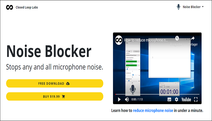 نقدم أداة Noise Blocker وهي التي ستساعدك في إزالة الأصوات الخارجية، فهي صممت خصيصًا لهذا الغرض، بإمكانها منع جميع الضوضاء الخارجية أثناء قيامك بتسجيل مقطع صوتي. تتوفر على نسختين، واحدة مجانية وأخرى مدفوعة (19.99$) بميزات متفاوتة، يمكنك تحميلها على نظام التشغيل ويندوز من الرابط في الاسفل والبدأ في الاستخدام.