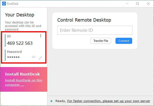 برنامج RustDesk مجاني ومفتوح المصدر للويندوز مخصص للتحكم في الحاسوب عن بعد ومشاركة سطح المكتب مع أي جهاز سواء كان هاتف أو حاسوب لينكس أو ماك. قم بتحميل البرنامج من الرابط أسفل التدوينة وبعد تشغيل البرنامج مباشرة ستحصل على واجهة توفر كود ID وكلمة مرور لربط الاتصال بهذا الجهاز والتحكم فيه من خلال مؤشر الفأرة ولوحة المفاتيح