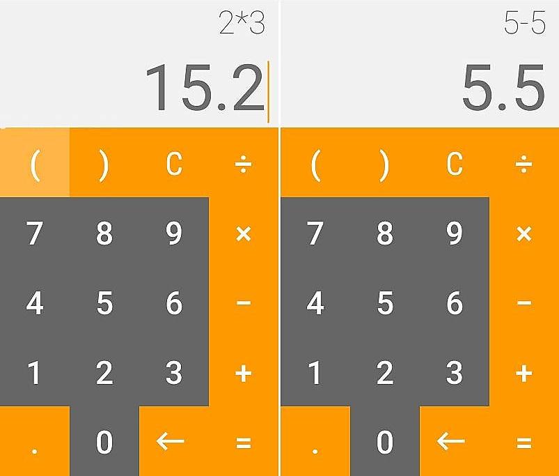 بعد الخطوة السابقة سوف يتم فتح تطبيق الآلة حاسبة وهي تبدو طبيعية ولكن بمجرد تنفيذ أي عملية حسابية ولمس زر يساوي = ستحصل على نتائج خاطئة وغريبة حسب المعادلة التي أدخلتها في برمجة الآلة الحاسبة