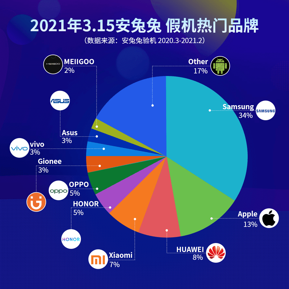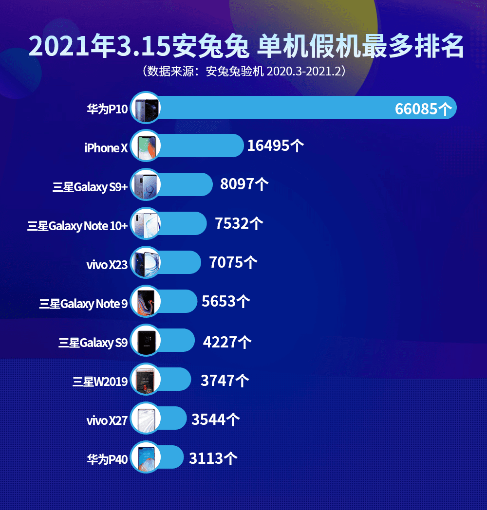 من مارس 2020 إلى فبراير 2021 ، حددت شركة AnTuTu للتحليل البرمجيات  572303 هاتفًا مزيفًا في الصين ، وهو ما يمثل 4.24٪ من جميع الهواتف التي تم تحليلها بواسطة هذا  التطبيق  خلال العام الماضي.