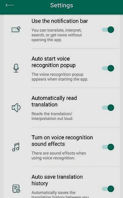 يمكن استعمال لوحة المفاتيح في كتابة الكلمات عوض نطقها بالصوت وتستطيع تغيير اللغة والتبديل بينها متى شئت بلمس أزرار الأسهم أو إضافة جمل تستعملها كثيراً للمفضلة بلمس زر النجمة وبإمكانك التحويل إلى وضع الترجمة الفردية العادية من زر القائمة من خيار وخيارات أخرى