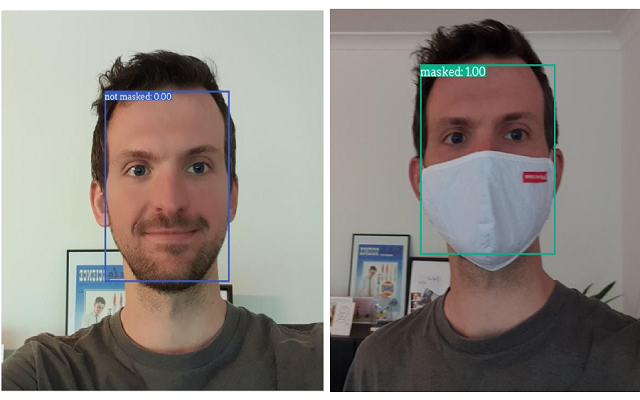 يعتمد النظام على تدريب هذه الخوارزمية على مجموعتين من الصور؛ المجموعة الأولى تتعرّف فيها على الوجه، أما الثانية فتتعرف فيها على شكل القناع. وبالتالي تتشكل قاعدة بيانات من خلال الاحتفاظ بصورتين لكل شخص، ومن ثم تقارنهما في وقتٍ لاحق كالتالي