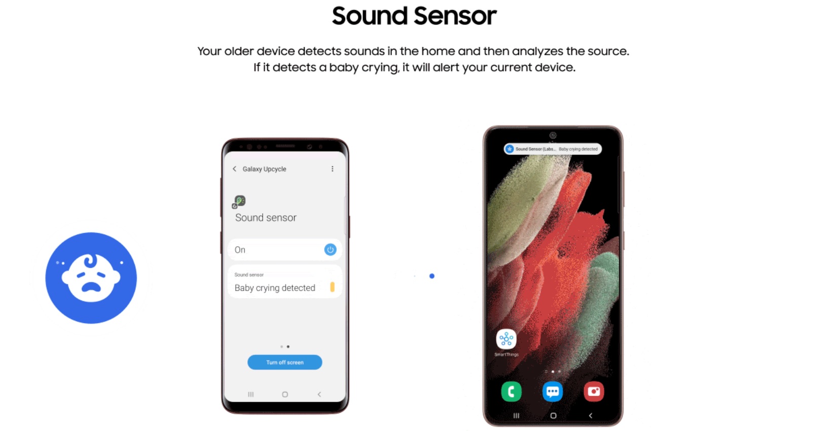 في الواقع سيكون بإمكاننا تحويل هاتف سامسونغ إلى جهاز منزلي ذكي ، مثل جهاز مراقبة نوم الأطفال أو حل رعاية الحيوانات الأليفة أو حتى الخيارات الأخرى التي قد تستخدم أجهزة الاستشعار المدمجة في الهاتف المحمول نفسه لتقديم إمكانات متقدمة في المنزل الرقمي.