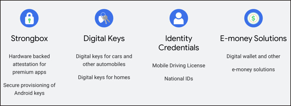 تعد Samsung و Google حاليًا مصنّعين قدموا حلولهم الخاصة التي تركز على الأمان. في حالة العلامة التجارية الكورية الجنوبية ، لدينا Knox ، بينما تحتوي بعض وحدات البكسل على شريحة أمان تسمى Titan M.