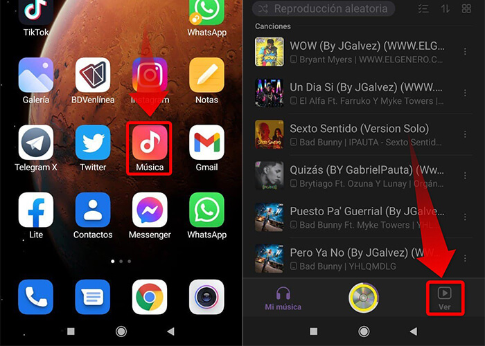 – بمجرد فتح التطبيق ، سيعرض جميع الموسيقى الموجودة على جهازك المخزن. الآن يجب النقر فوق خيار ” مشاهدة ” الموجود في أسفل اليمين.