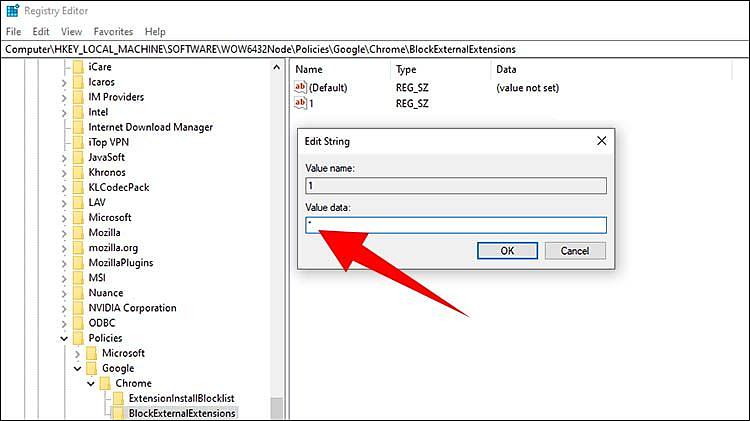 انقر فوق قيمة 1 بالزر الأيسر مرتين وقم بكتابة رمز النجمة * في مربع Value data ثم انقر فوق OK