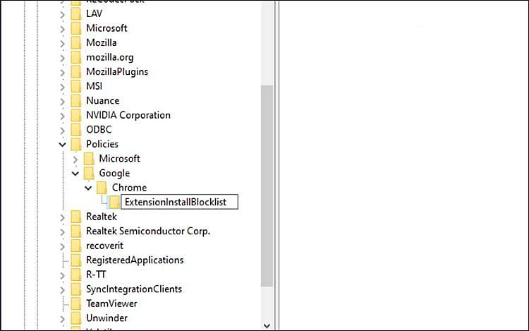 قم بالنقر فوق Chrome بالزر الأيمن ثم اختر New ثم Key وقم بتسميته ExtensionInstallBlocklist