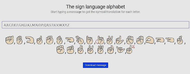 الموقع يتيح إمكانية تنزيل الإشارات التي تم توليدها كصورة بجودة عالية للطباعة من خيار Download message. الأداة عبارة عن تجربة جديدة ورائعة ستجعلك قادر على التواصل بلغة الإشارة ومساعدة ضعاف السمع ومساعدتهم بسهولة.