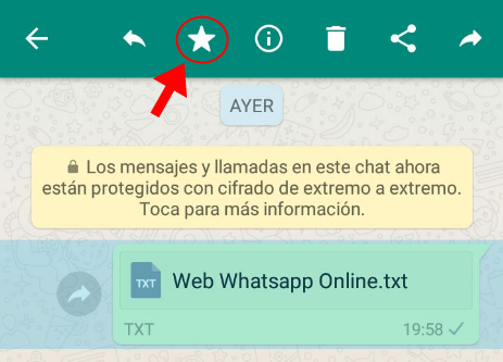 يتيح لك واتساب تمييز أي محادثة في الدردشة. من خلال الضغط باستمرار على الشاشة في أي رسالة ، سيتم عرض شاشة صغيرة بها خيارات متنوعة. أحدها هو إبراز (الشخص ذو النجمة) ويسمح لنا “بحفظ” الرسائل ثم نتمكن من الوصول إليها بسرعة وسهولة دون الحاجة إلى الغوص في المحادثة بأكملها.