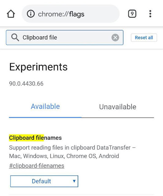يسمح هذا التغيير لـغوغل كروم بقراءة الملفات من الحافظة لاستخدامها على صفحات الويب ، مثل لصق مرفق في رسالة بريد إلكتروني. بدون تنشيط علامة الكروم هذه .