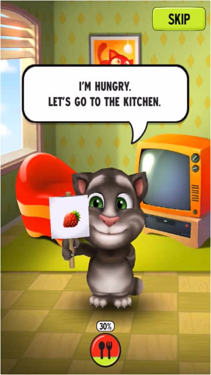 – بعد التحميل ستتوفر جميع الأدوات التي تستطيع من خلالها التحكم بالقط توم, كما أنه يمكنك إطعامه:
