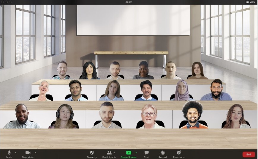 يسمح  Immersive View الجديد بما يصل إلى 25 مشاركًا. يمكن أن تكون المساحات المشتركة حيث يمكن أن “يتعايش” هؤلاء المشاركون الافتراضيون في قاعة اجتماعات أو قاعة دراسية ، والتي يتم اختيارها بناءً على الاجتماع.   يمكن للمضيفين نقل الأشخاص يدويًا على الشاشة أو السماح لـ Zoom بالقيام بذلك تلقائيًا.